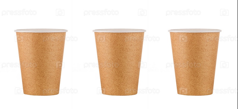 Бумажный стаканчик из крафт-бумаги на белом изолированном фоне
