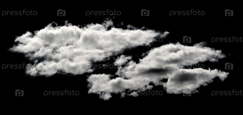 Пушистые белые облака, изолированные на черном фоне