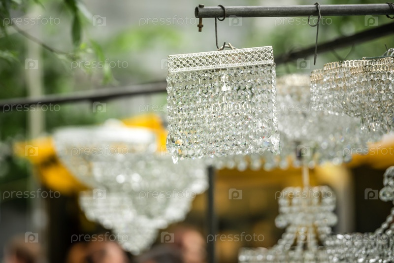 Хрустальные люстры для продажи на уличном рынке
