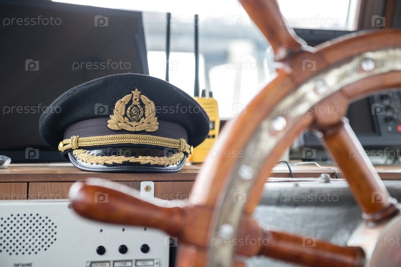 Россия, Санкт-Петербург, 14 сентября 2022 г.: Капитанская шляпа в диспетчерской корабля