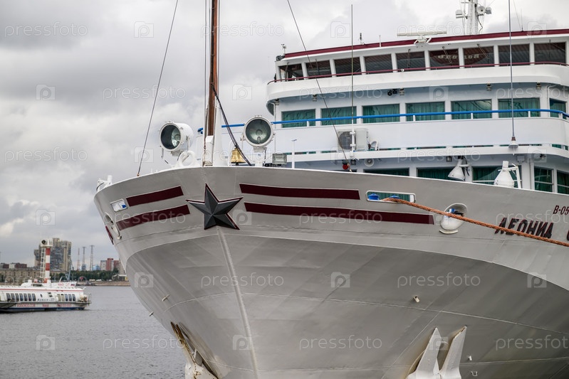 Россия, Санкт-Петербург, 14 сентября 2022 г.: нос большого белого корабля