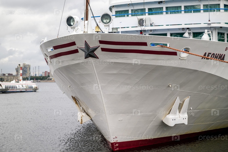 Россия, Санкт-Петербург, 14 сентября 2022 г.: нос большого белого корабля