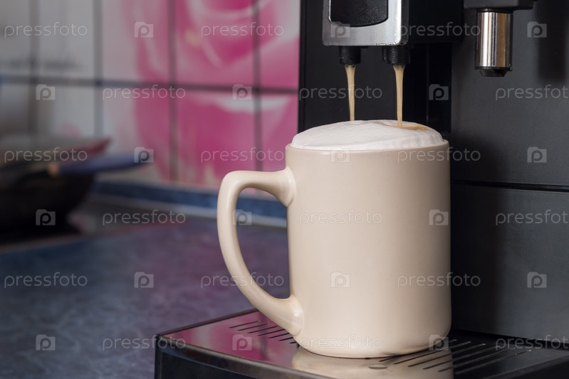 Кофемашина делает капучино на кухонном столе