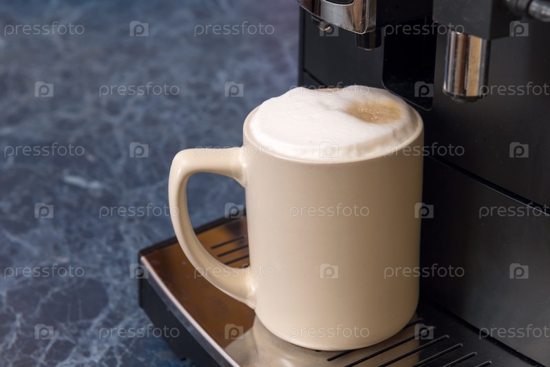 Кофемашина делает капучино на кухонном столе