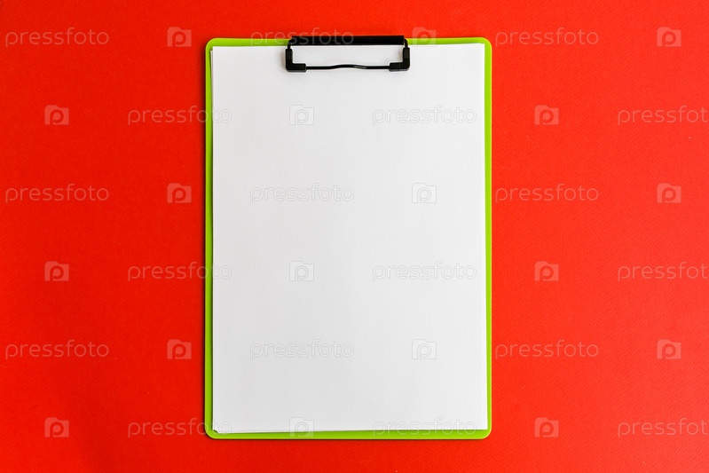 Планшет с чистым листом на красном фоне