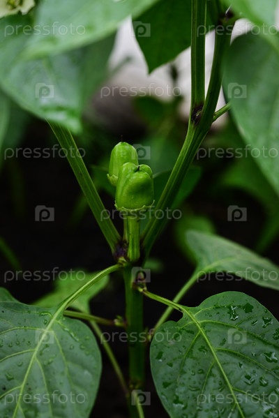Зеленый перец растет в саду