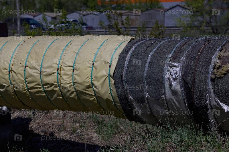 Ветхий старый рваный слой изоляции на трубопроводе плохо изолирует коммуникации и требует ремонта