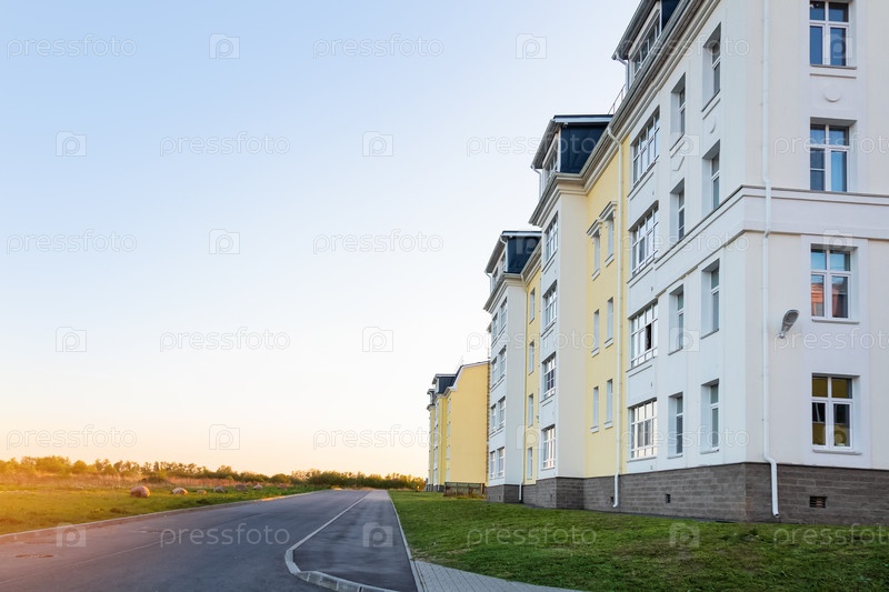 Четырехэтажный жилой дом на закате