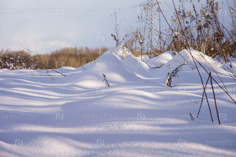 Снег на поле. Земля под снегом. Кристально белый снег на земле