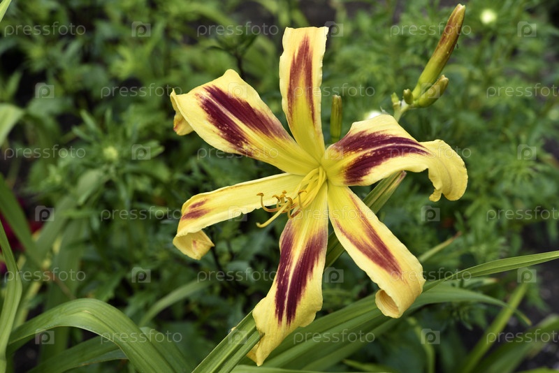 Желтые и красные лилии в летнем саду. Крупные цветы лилии