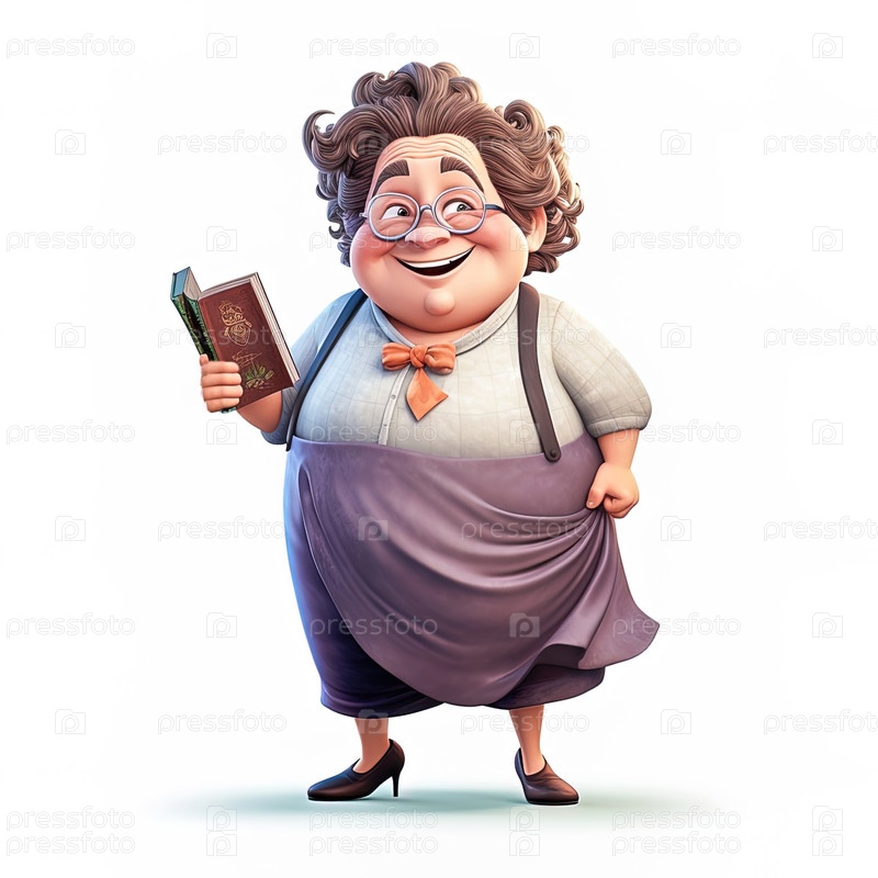Иллюстрация веселого, взрослого, толстого учителя начальных классов. Концепция школьного образования