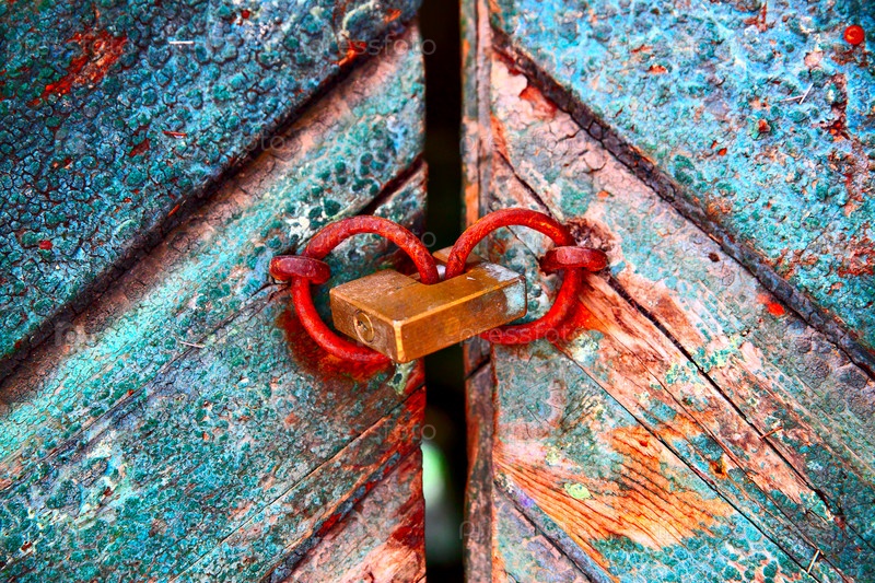 Старая красочная дверь с замком