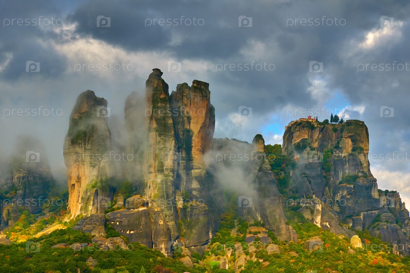 Скалы в Метеорах в плохую погоду