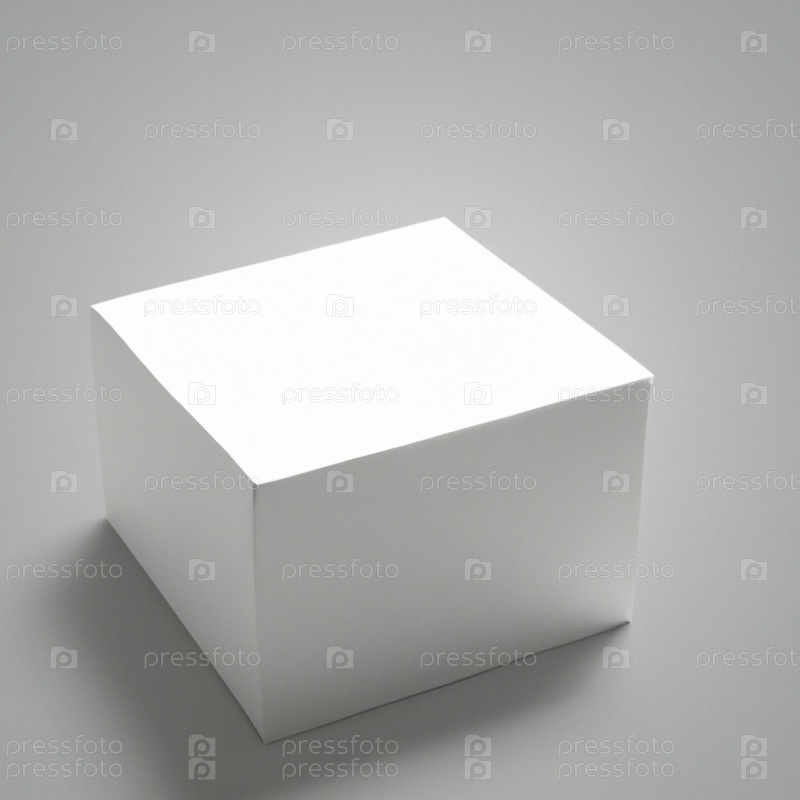 Объемная пустая белая коробка с тенью на сером фоне. Свободное место для текста. Скопируйте пространство. Свет падает сверху