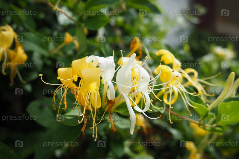 Lonicera japonica, японская лиственница и золотисто-серебряная лиственница - это разновидность лиственницы, произрастающая в Азии.Декоративное растение, используемое в традиционной китайской медицине.Белые желтые цветы