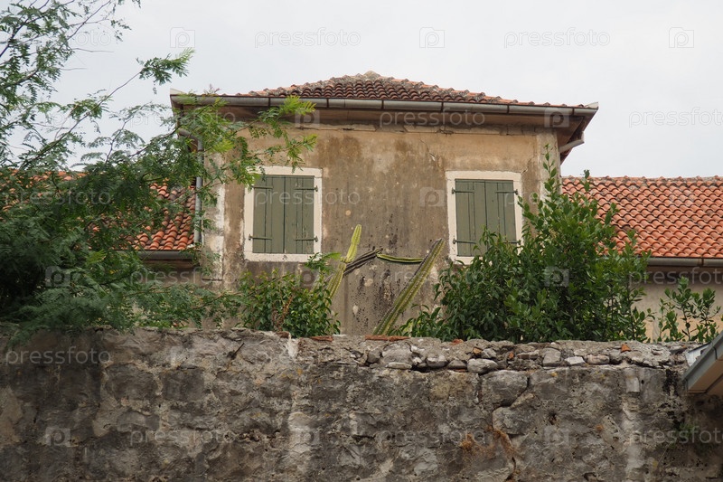 Герцег-Нови, Черногория, 9 августа 2022 г. Архитектура Адриатического побережья Средиземного моря. Бока-Которский залив. Современные и исторические здания старого города и жилых районов. Узкие улицы