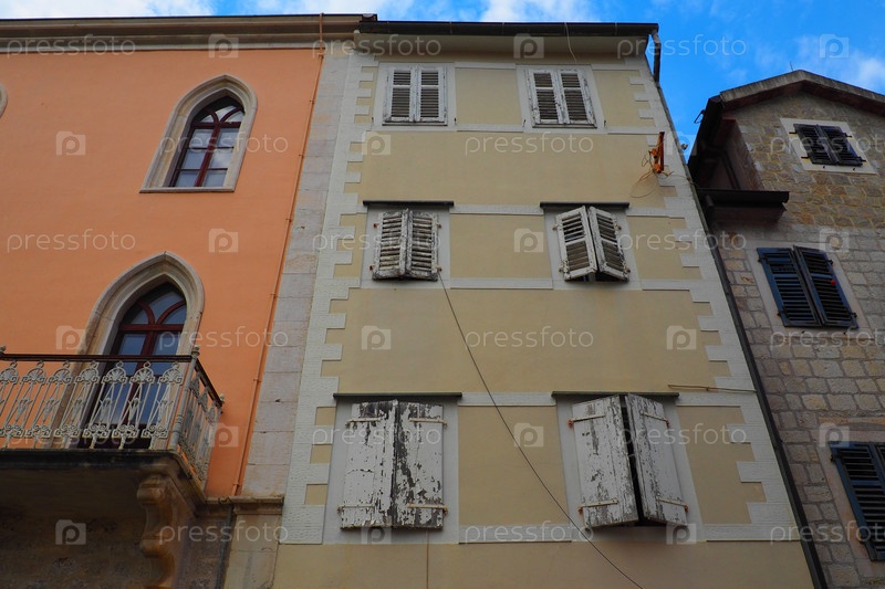 Герцег-Нови, Черногория, 9 августа 2022 г. Архитектура Адриатического побережья Средиземного моря. Бока-Которский залив. Современные и исторические здания старого города и жилых районов. Узкие улицы