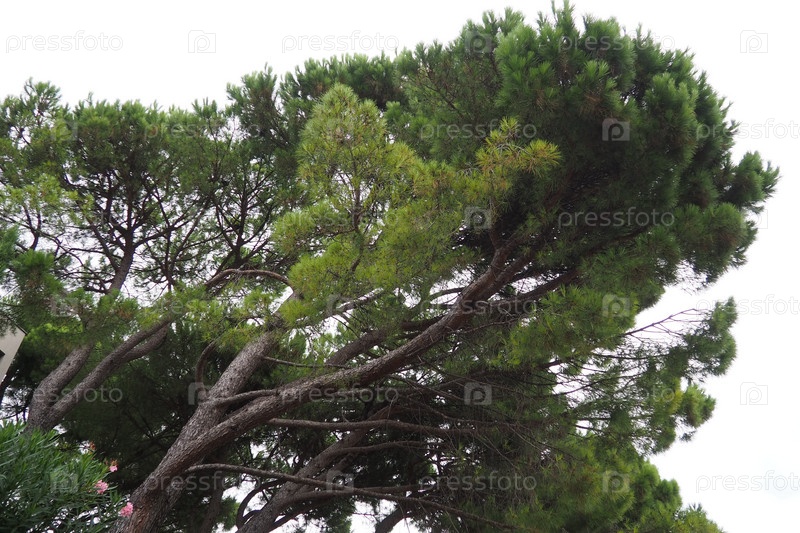 Алеппинская сосна, или иерусалимская сосна Pinus halepensis сосновое дерево, вид рода Pinus семейства Pinaceae. Сосновый парк в Герцег-Нови, Черногория. Побережье Адриатического моря, Средиземное море