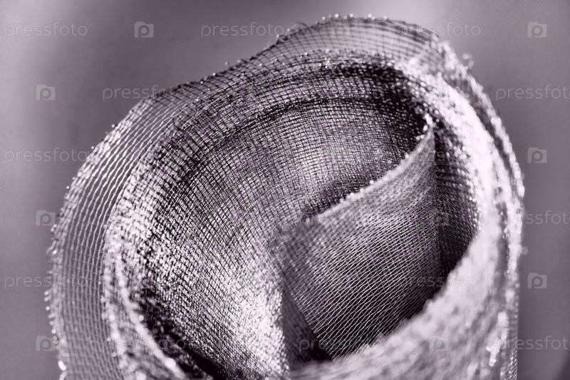Металлическая сетка. Рулонная сетка серого цвета. Сверхпрочная стальная или алюминиевая сетка с рваными краями