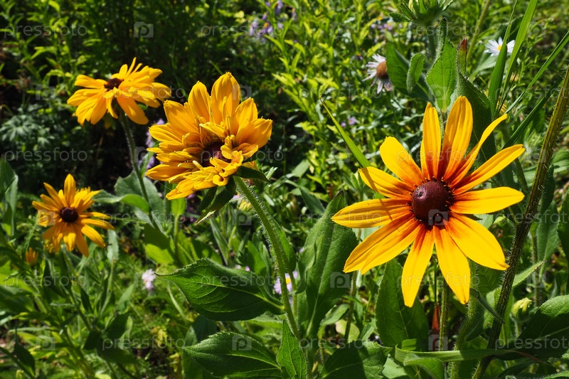 Род растений Rudbeckia семейства сложноцветных. Цветы рудбекии имеют выступающий поднятый центральный диск черного или коричневого оттенка. Эхинацея и черноглазый Сьюзан. Желтый или золотой цветок