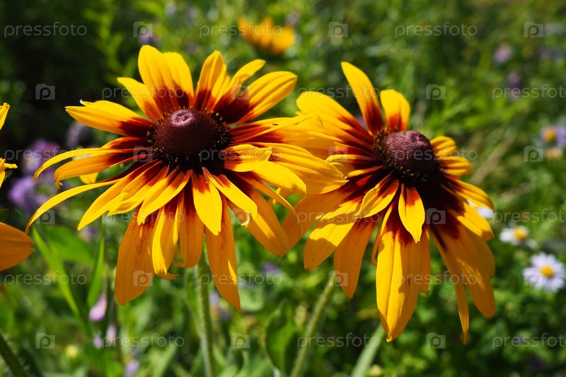 Род растений Rudbeckia семейства сложноцветных. Цветы рудбекии имеют выступающий поднятый центральный диск черного или коричневого оттенка. Эхинацея и черноглазый Сьюзан. Желтый или золотой цветок