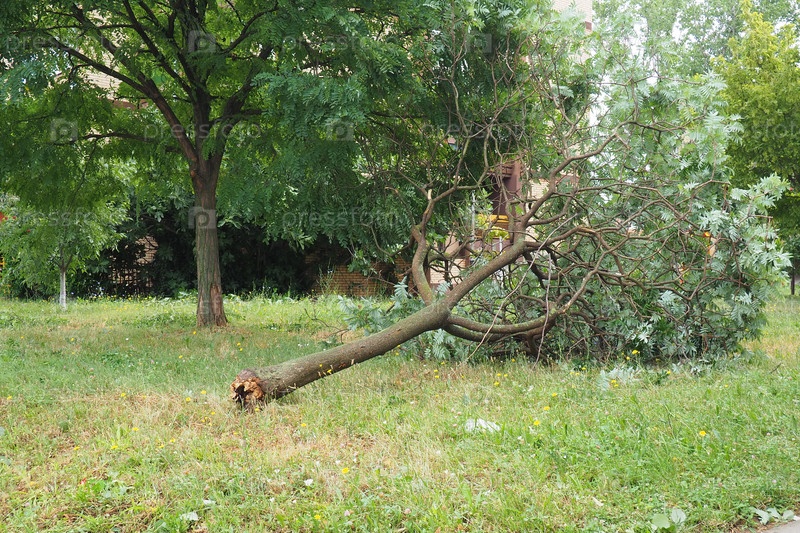 Последствия урагана 19 июля 2023 г. Сремска-Митровица, Сербия. Сломанные деревья, бардак на улицах. Сломанные ветки, погнутые стволы. Чипсы и мусор. Чрезвычайное положение после катастрофического шторма