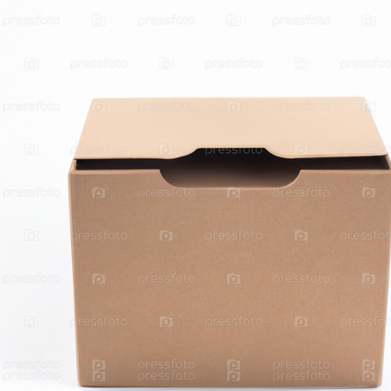 Картонная коричневая коробка или крафт-пакет на белом фоне. Почтовая посылка или пакет. Свободное место для текста. Скопируйте пространство. Генерируется ИИ. Коробка для обуви с крышкой