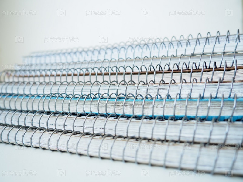 Стопка весенних тетрадей. Толстые тетради или блокноты, поставленные друг на друга. Канцелярские товары для записей, ведения дневника, ведения бухгалтерии и бизнеса. Учебные принадлежности