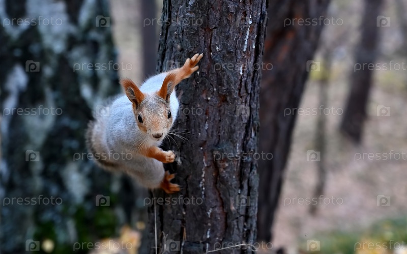 Молодая белка крупным планом на дереве
