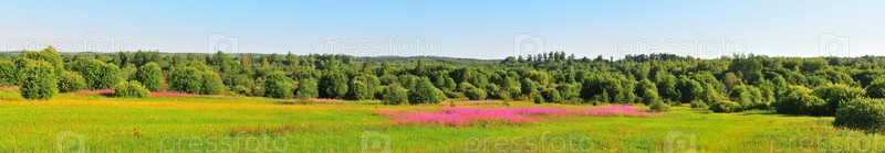 Панорама поля с зарослями Иванчая в Лихиславском районе Тверской области