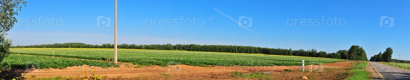Панорама поля с цветущей картошкой в Лихиславском районе Тверской области