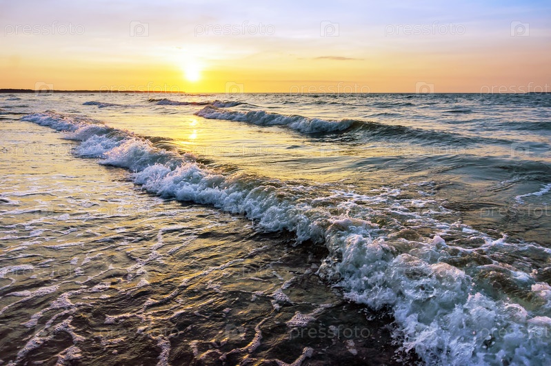 Закат над морем. Отражение солнечного света в морских волнах. Небо в закатных лучах