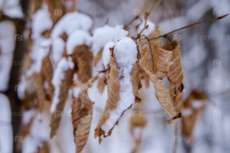 Трава в снегу. Снег покрыл траву и кусты. Белый кристаллический снег на земле