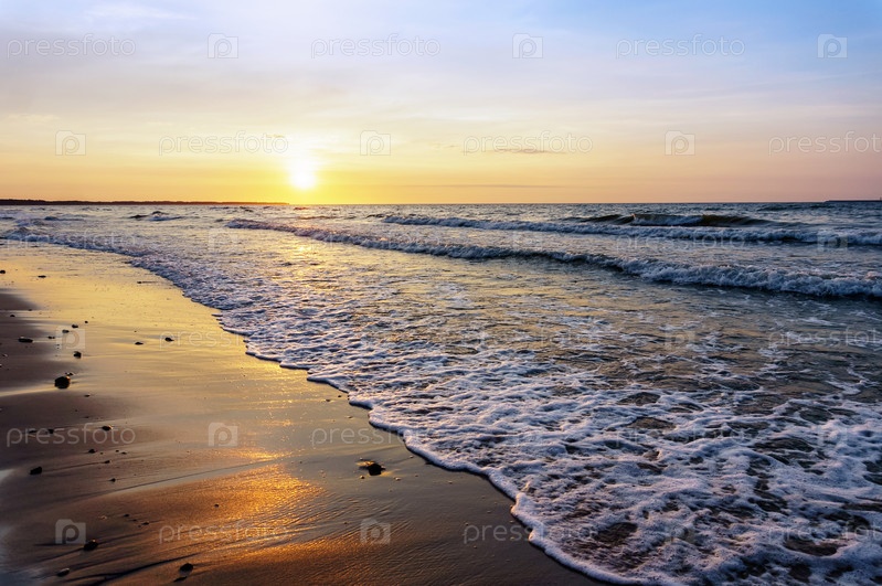 Закат над морем. Отражение солнечного света в морских волнах. Небо в закатных лучах