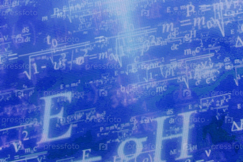 Россия. Санкт-Петербург. Цирковое шоу 'Инопланетный цирк ОФУ приземление'. Премьера новогоднего циркового шоу 'Инопланетный цирк ОФУ приземление' Большого Московского цирка. Физические и математические формулы на синем фоне