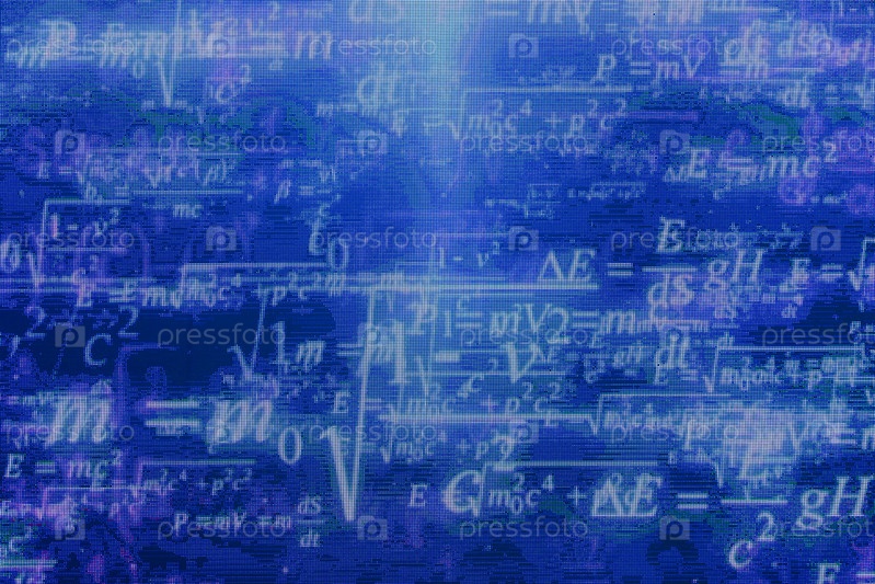 Россия. Санкт-Петербург. Цирковое шоу 'Инопланетный цирк ОФУ приземление'. Премьера новогоднего циркового шоу 'Инопланетный цирк ОФУ приземление' Большого Московского цирка. Физические и математические формулы на синем фоне
