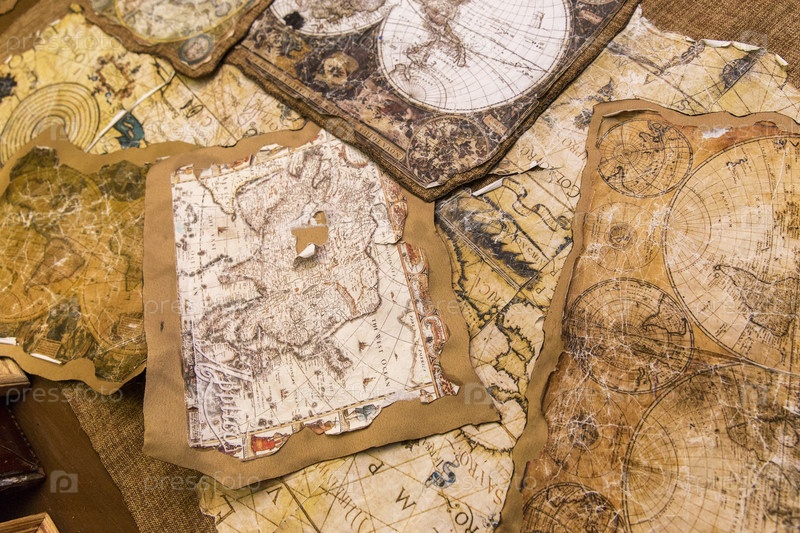 Россия. Санкт-Петербург. Имитация старинных карт. Детский развлекательный центр 'Волшебная миля'. Images with imitations of old maps
