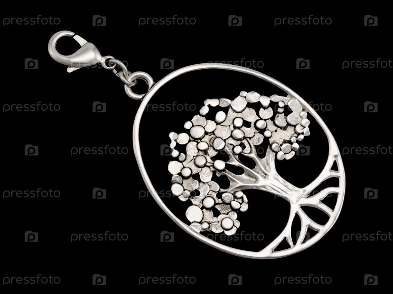 Бижутерия, кулон из белого металла на черном фоне