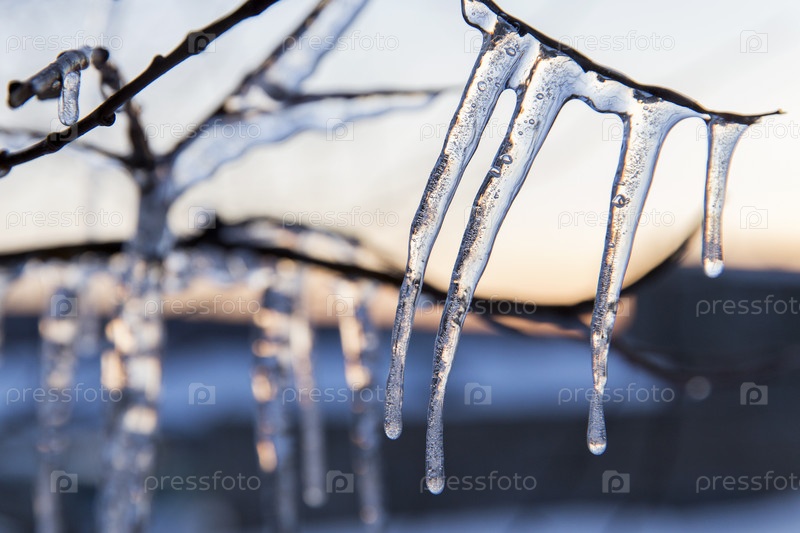 Россия. Республика Саха (Якутия), поселок Нижний Куранах. Наледь (сосульки) на ветках деревьев. Россия. Республика Саха (Якутия), село Нижний Куранах. Лед (морозы) на ветвях деревьев
