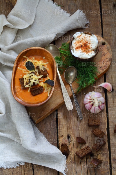 Овощной суп с сухарями и сыром