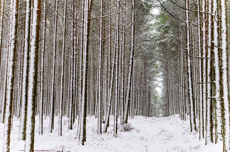 Лес зимой. Деревья под снегом. Снег в лесу