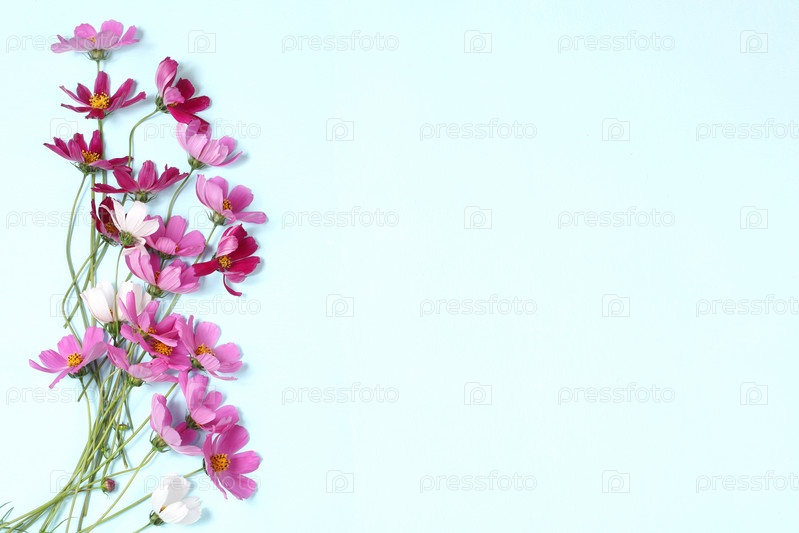 Рамка из красивых цветов ромашки на светлом фоне с местом для текста, натюрморт и цветочная открытка на день рождения, свадьбу, абстрактную цветочную композицию. концепция праздника с цветами, выборочный фокус