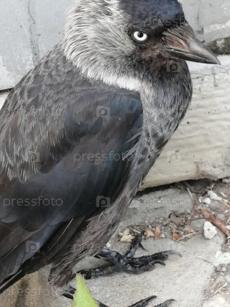 Птица галка гипнотизирует взглядом