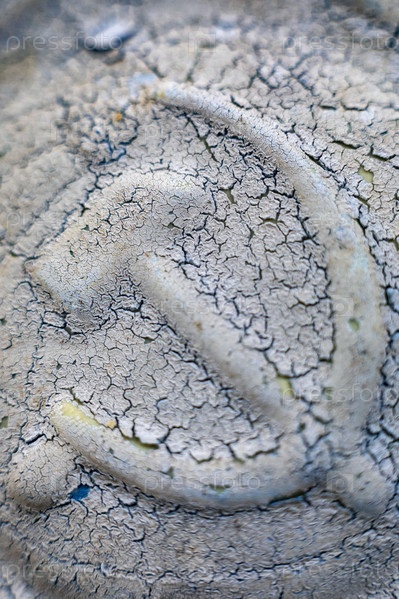 Россия. Санкт-Петербург. Старое пластиковое изображение знака Змей и молот. Россия. Санкт-Петербург. Старый пластиковый образ знака Молоток и серп