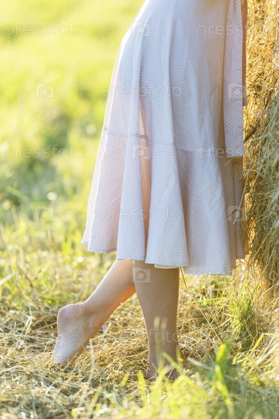 Россия. Санкт-Петербург. Женские ноги. Девушка в платье в поле на закате Women's legs. A girl in a dress in a field at sunset