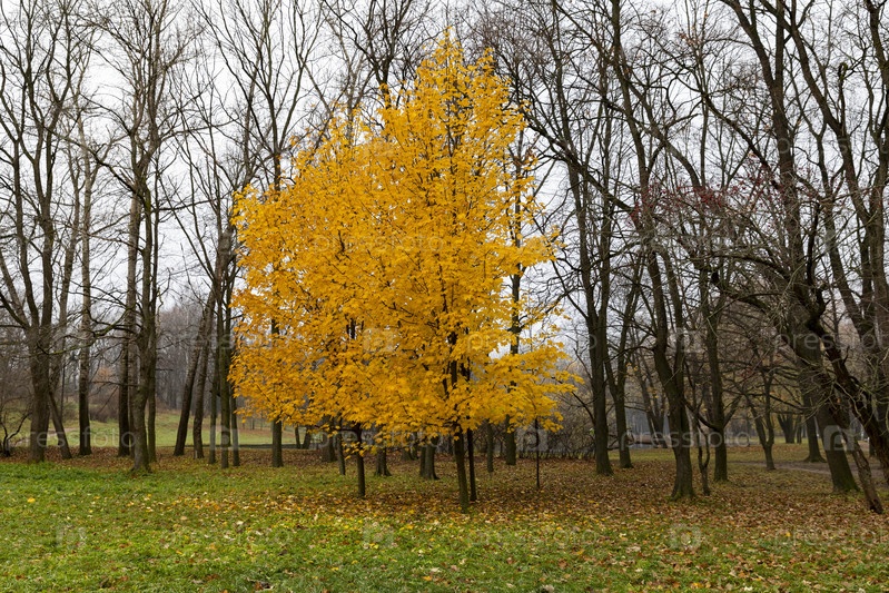 Россия. Санкт-Петербург. Клен с желтыми листьями в парке поздней осенью. Россия. Санкт-Петербург. Maple with yellow foliage in the park in late autumn