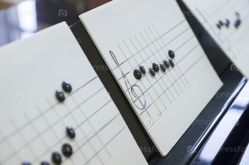 Россия. Санкт-Петербург. Школьное образование. Ноты и инвентарь для занятий музыкой в классе. Россия. Санкт-Петербург. Школьное образование. Лист музыки и оборудование для музыкальных уроков в классе