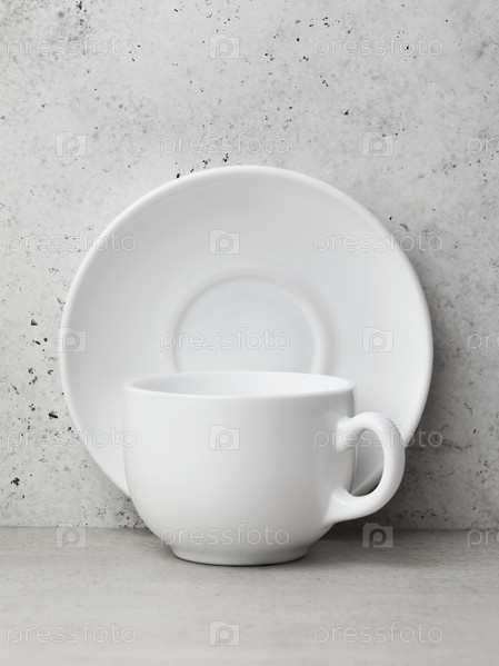 Одно белое керамическое блюдце и чашка для чая или кофе на столе