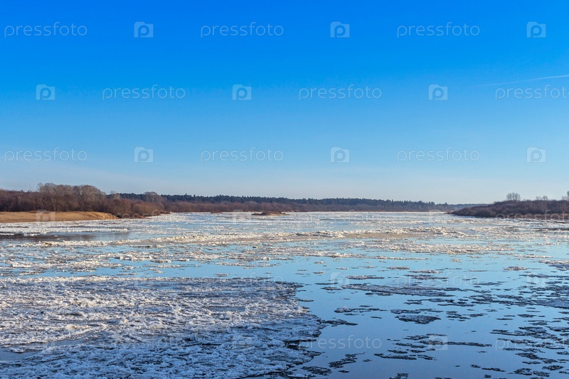 Ледоход на реке в весенний день