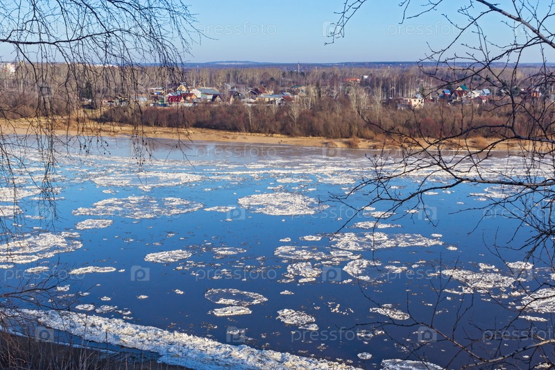 Ледоход на реке в весенний день